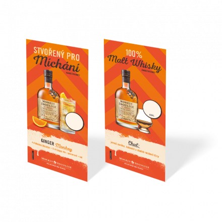 Vkladka do menu Monkey Shoulder s cenovkou z jedné strany za panáka, z druhé strany za koktail Ginger Monkey.