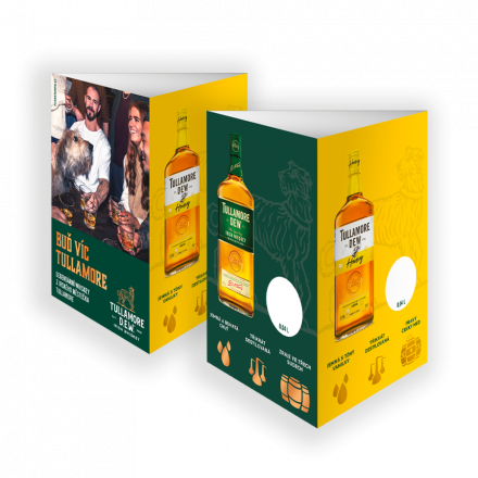 Vkladka do menu Tullamore D.E.W., v kombinovanom prevedení Orignal a Honey, s cenovkou.